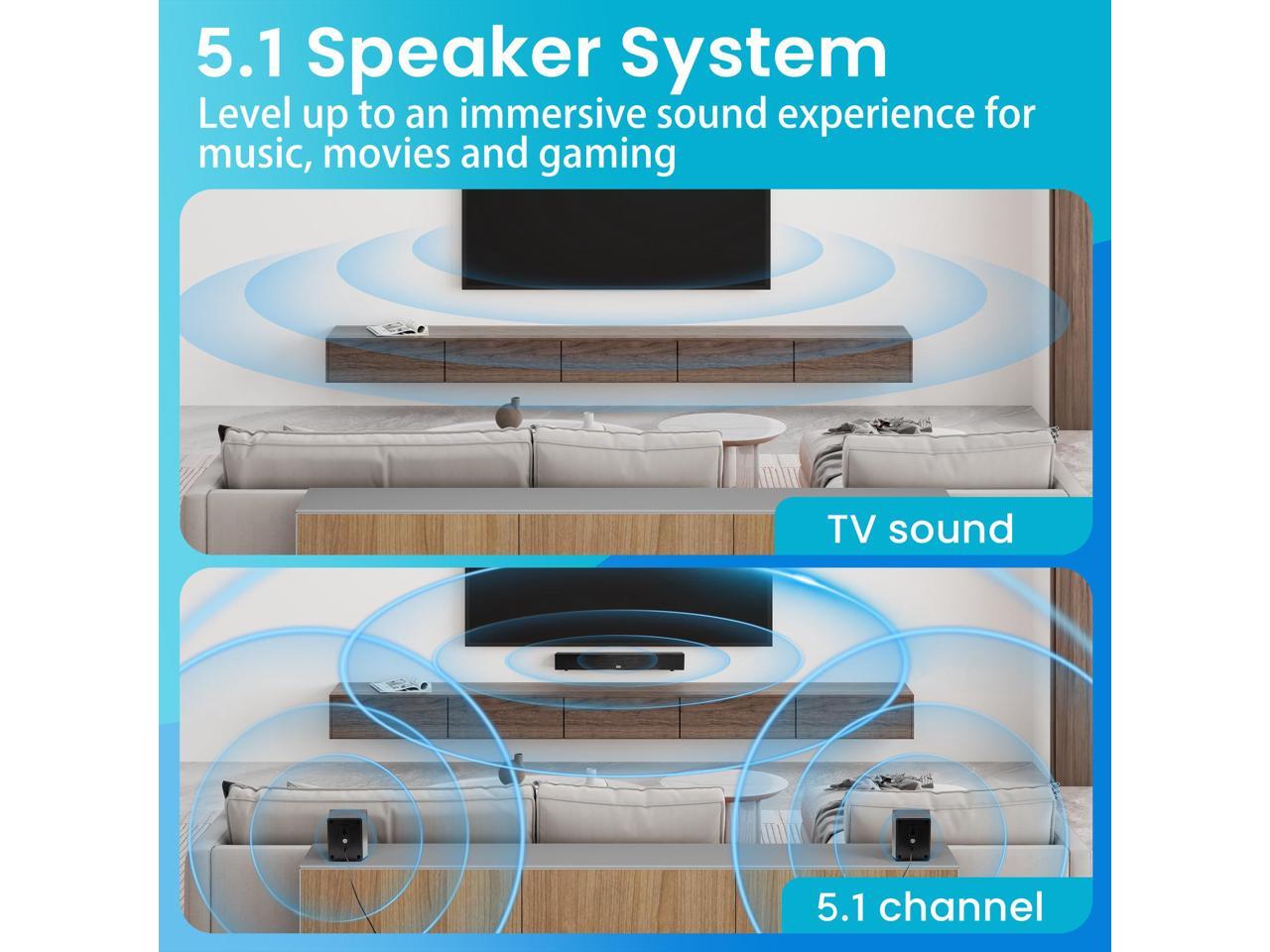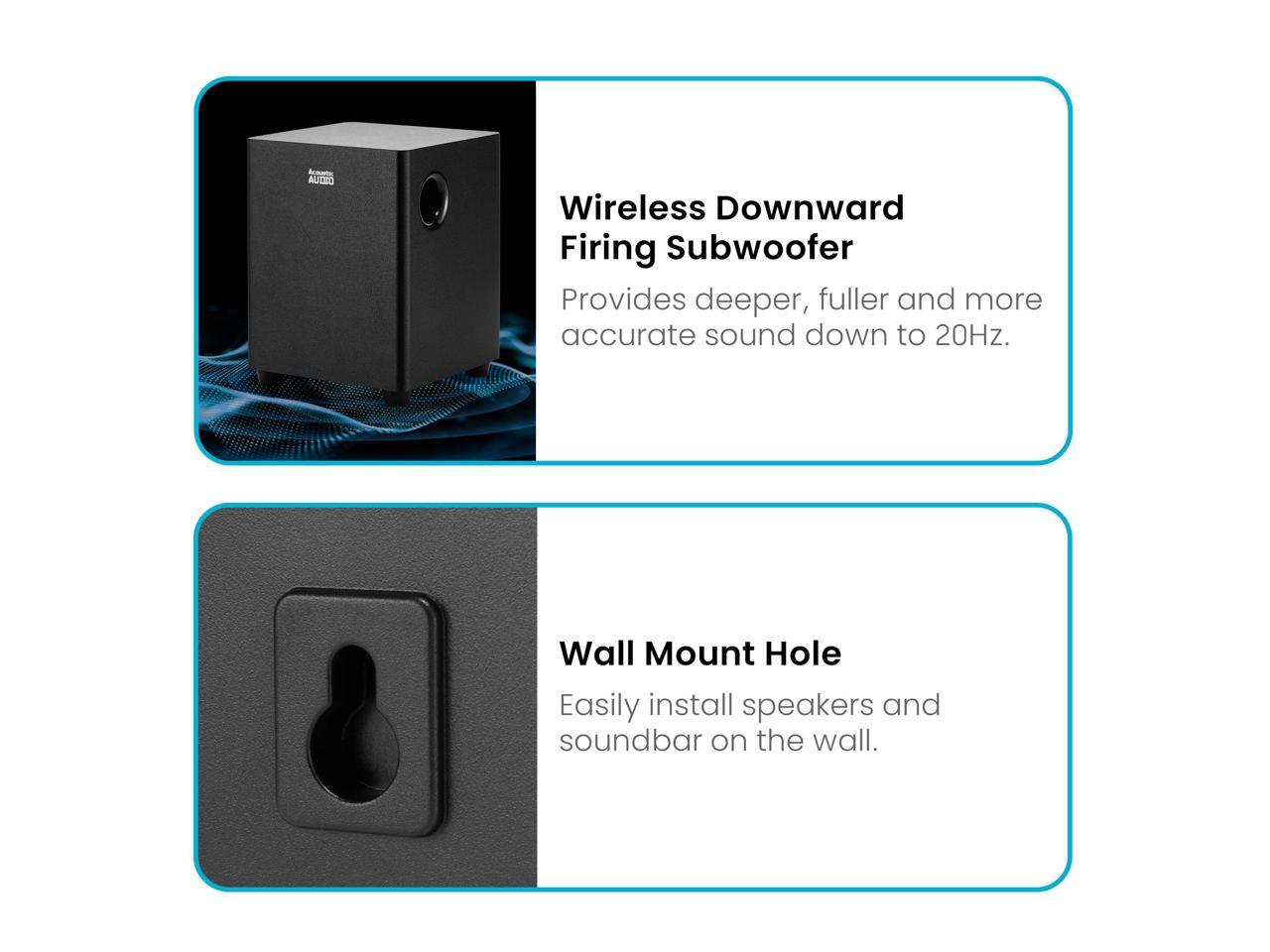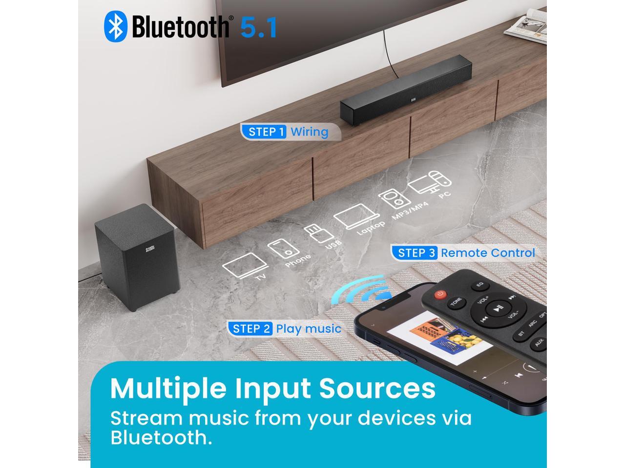 Acoustic Audio 5.1 Surround Sound Home Theater Sound Bar with Bluetooth, RCA, Optical, ARC, AUX, Wireless Subwoofer and Remote Control - AA5190 (Black)