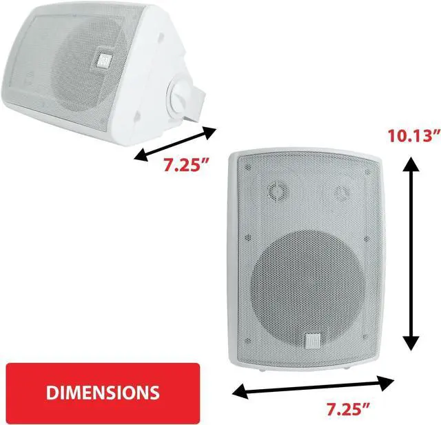 WEATHER RESISTANT COATING your speakers are coated with a UV resistant resin and placed inside an ABS enclosure protecting it from the elements and preserving sound integrity making them great patio speakers