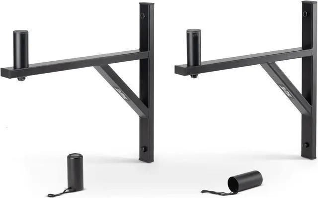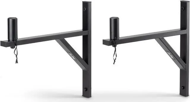 Convenient. Includes a pair of wall-mountable speaker brackets for stand-free support of a set of two speakers for stereo playback or mono sound coverage over a wide area. Strong. Heavy-duty steel construction ensures reliable weight support and provides outstanding strength for dependable mounting of small speakers weighing up to 80 pounds each in schools, clubs, bars, restaurants, houses of worship, and homes. Versatile. Comes with hardware for secure installation on wooden wall studs through drywall. The brackets can also be installed on concrete walls with hardware approved for concrete (not included).