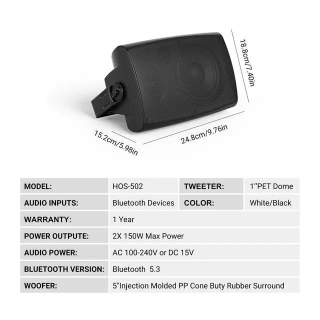 | Bluetooth Connection | Bluetooth 5.3 built- in amplifier |