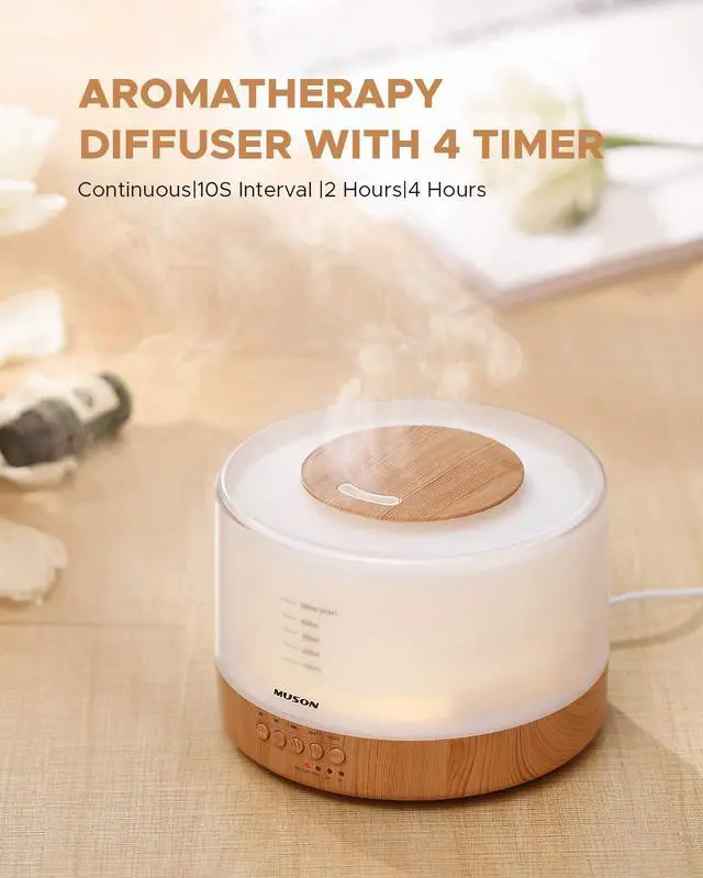 This aromatherapy diffuser humidifier can also be set to 4 timer mode (Continuous|10S Interval |2 Hours|4 Hours).