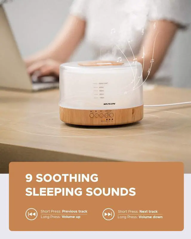 It can work with aroma mist or alone to help you fall asleep, improve your sleep quality or cover up outside noise.