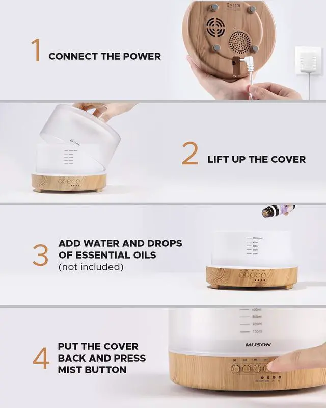 Find more about how to use this multifunctional sound machine diffuser in the product video and the user manual.