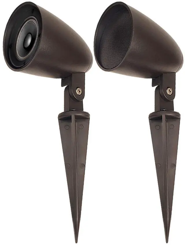 The LS2 landscape speaker pair offers a modern and high-quality audio for outdoor spaces. These weather-resistant speakers have sealed enclosures and integrated drive-baffle assemblies, delivering powerful sound for outdoor activities. With a 2.5" sealed PE cone, 200Hz-20kHz frequency response, and 30W power handling capacity, each speaker measures 5.75" x 3.75" and comes with a 9" stake for easy installation. Available in a stylish brown color, and these speakers come in pairs.