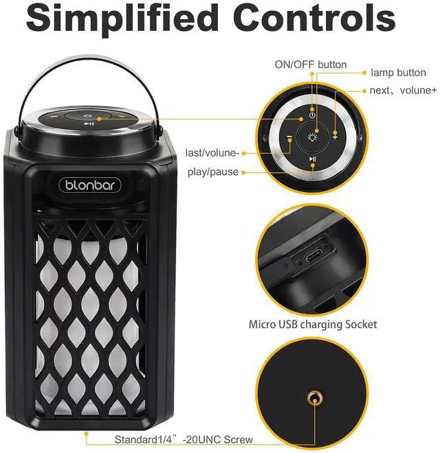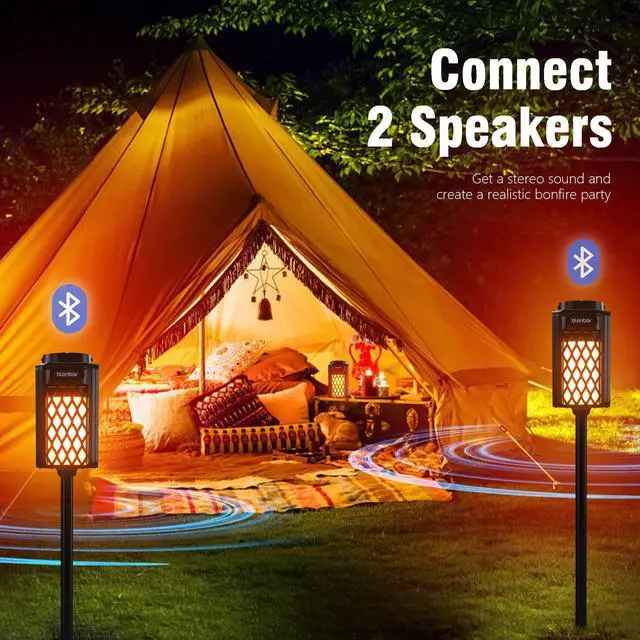 Our bluetooth speaker has 96 LEDs, which can form a realistic & natural dancing flames when they flicker with warm yellow light. Compatible with all Bluetooth compatible devices.They provide a excellent bonfire atmosphere for your patio, garden, party, beach, BBQ and camping.