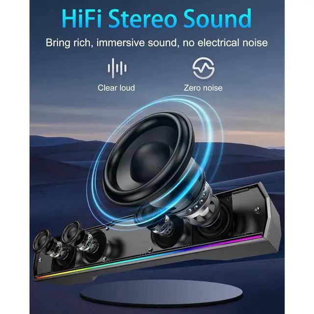 Clear & Loud Sound: Upgraded chip delivers powerful and crystal-clear audio! Even at maximum volume, the computer speakers sound are still No Static, No Distortion.(Note: no heavy bass)