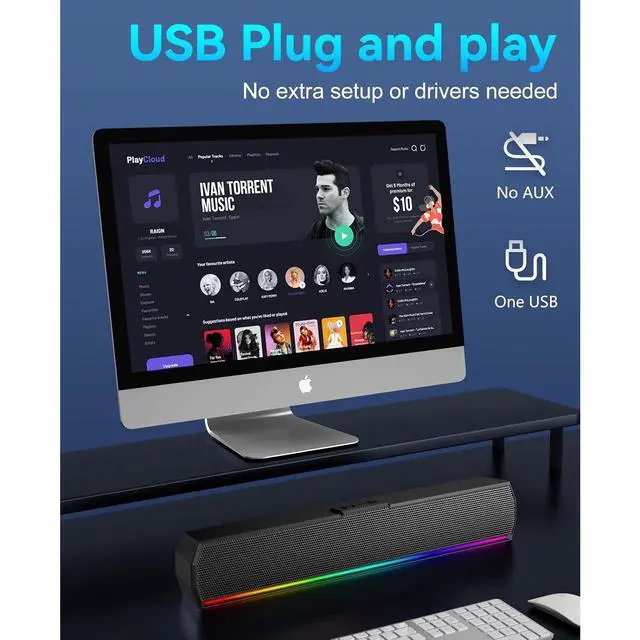 Single Extra-Long USB Cable: Enjoy true plug & play convenience with USB cable! Singel USB speaker for both power and audio. No AUX need! edeasier to set up, organize, and keep your desk clean.