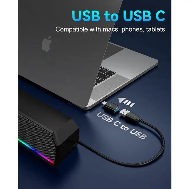 USB-C Adapter Ready: PC speakers come with a durable USB-C to USB adapter for wider compatibility. Perfect for MacBook, tablets, phones, and other devices with Type-C ports.