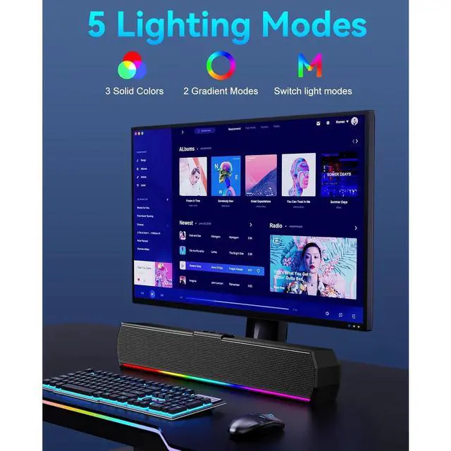 Multiple Light Modes: Customize your space with long-lasting lighting effects. Monitor speakers with independent button lets you switch modes instantly to fit your mood or style.