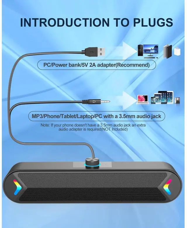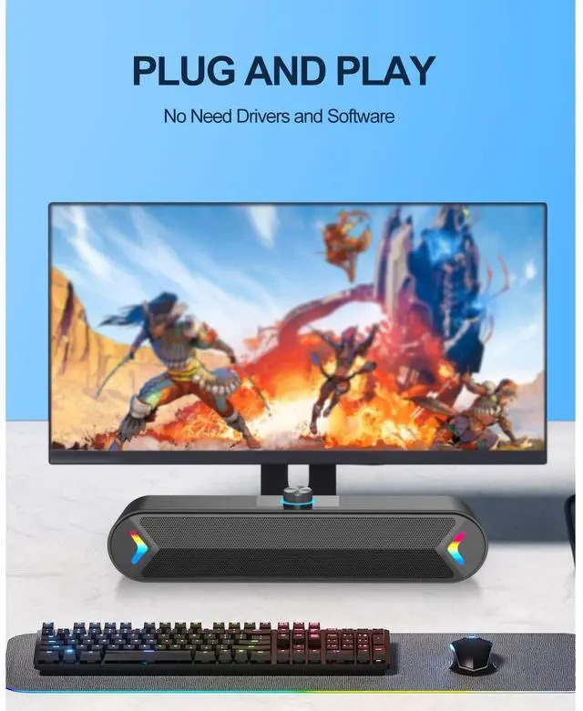 Stereo and Noiseless:The PC speaker uses upgraded 2x5W technology to deliver the clear and crystal sound .The soundbar speaker can enhance your listening experience when you enjoying indoor movies, videos, music and games.