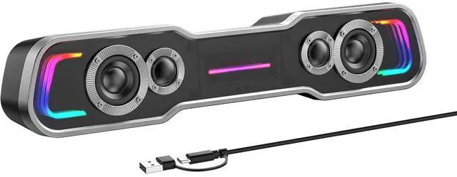 Eyesoul Bluetooth Computer Speakers for Desktop, Dynamic Multi-Layer RGB Lighting Gaming PC Speaker with Deep Bass, USB C/USB Powered Sound-bar for Computer Desktop PC Monitor Laptop (BS-SP1)
