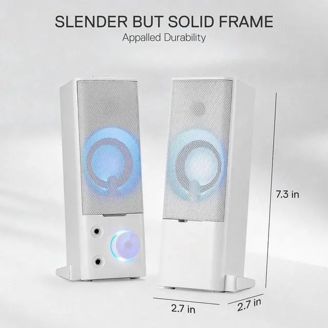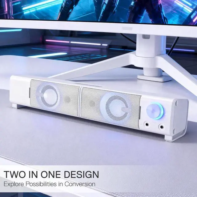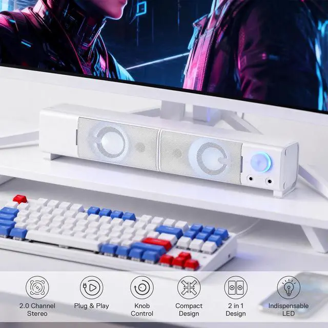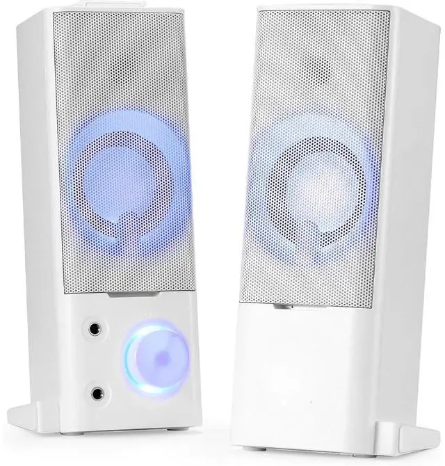 Eyesoul GS550 PC Gaming Speakers, 2.0 Channel Desktop Computer Sound Bar with Compact Maneuverable Size, Headphone Jack, Quality Bass & Decent Red Backlit, USB Powered w/ 3.5mm Cable, White