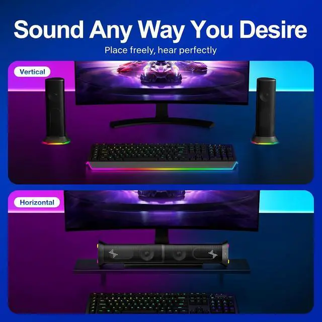 Plug. Play. EnjoyNo drivers requiredjust plug in and enjoy. These monitor speakers work seamlessly with desktop PCs, laptops, monitors, PS5, Xbox, and more using USB power and a 3.5mm AUX connection. Simple, stable, and hassle-free.