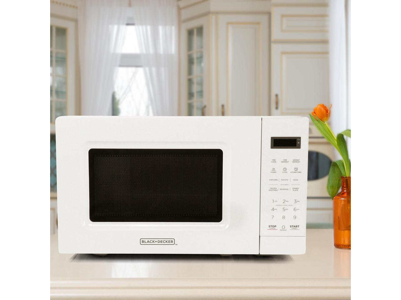 Black and Decker 0.7 Cu Ft 700 Watt LED Digital Microwave Oven in White with Child Safety Lock