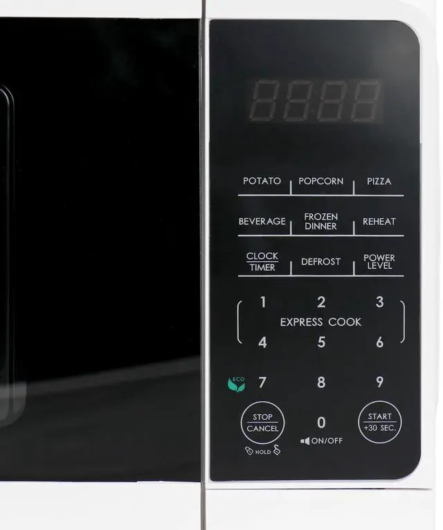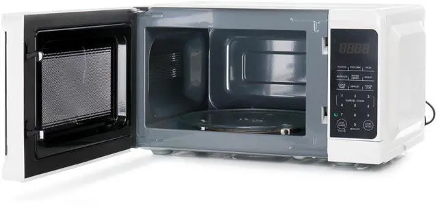 Get your favorite foods cooked easily and conveniently in the Galanz 0.7 cu ft 700W Countertop Microwave Oven. This efficient appliance has 700 watts of cooking power for effective heating. Featuring a modern design, this microwave oven has 10 different power levels to fulfill all of your cooking desires. When you want to have something ready to eat fast, the 30 second express cooking mode ensures to cook your meal in a snap. The LED display is bright and easy to read, and the handy built-in kitchen timer makes it convenient to plan your meals.