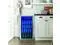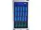 Bright and Modern: Illuminated interior with blue LED lighting in this glass-door beverage cooler showcases the contents