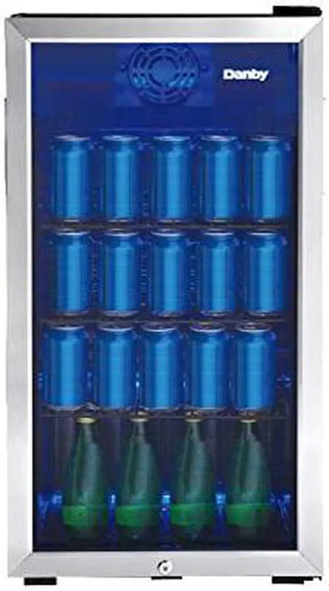 Beverage Cooler with Glass Door: This Danby Beverage Center is the ideal beverage fridge for your wet bar, den, family room, kitchen or basement