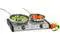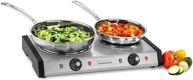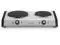 The Cast-Iron Double Burner offers the ultimate in cooking flexibility, adding two extra burners to any kitchen, or any place without a kitchen. Its 1800-Watt of power a 1300-Watt large plate and a 500-Watt small plate heat up quickly and retain high heat throughout cooking. The coil-less cast iron plates are durable and wipe clean in a snap. Premium brushed stainless steel housing looks stylish in any setting. A separate 6-setting temperature control for each burner offers complete versatility the lower settings keep foods warm, while the higher settings cook an entire meal.