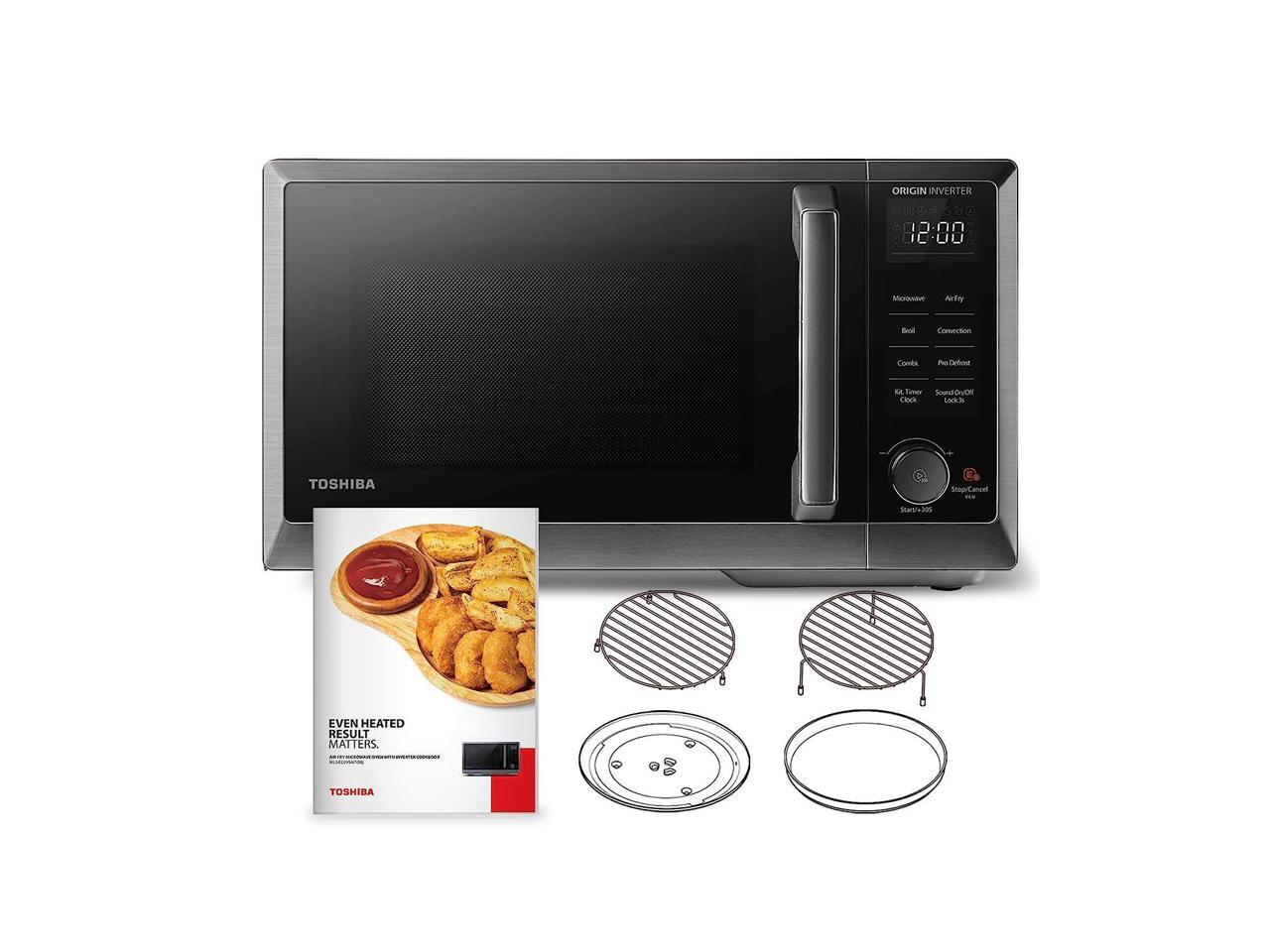 - LESS FAT AND CRISPIER: With 360° rapid heat circulation technology, TOSHIBA Multi-Microwave with air fryer cuts down on calories by using no added oil while delivering crispier and golden fried favorites like chicken, shrimp and French fries.