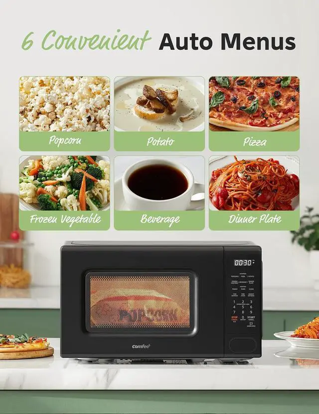auto-cook functions: Popcorn, potato, pizza, frozen vegetable, beverage, reheat