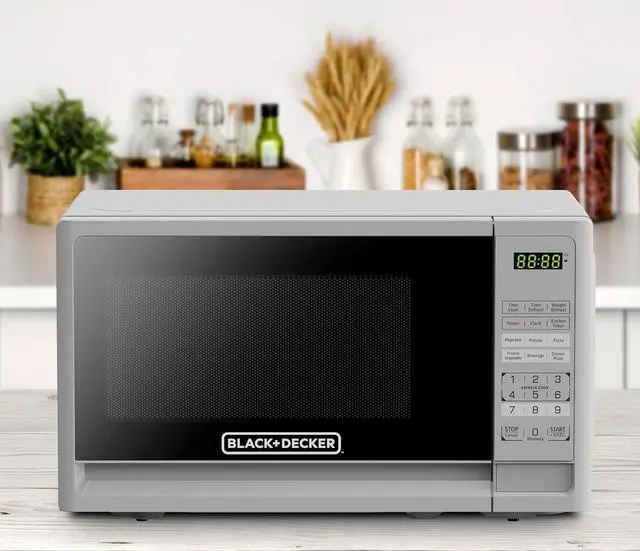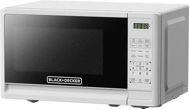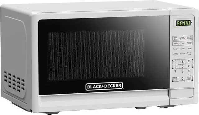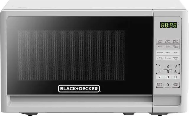 CONVENIENT: Black plusDecker 0.7 Cu. Ft. white microwave oven is the ideal anywhere you need it small microwave solution for home or office. Full-sized cooking that fits in a compact space.