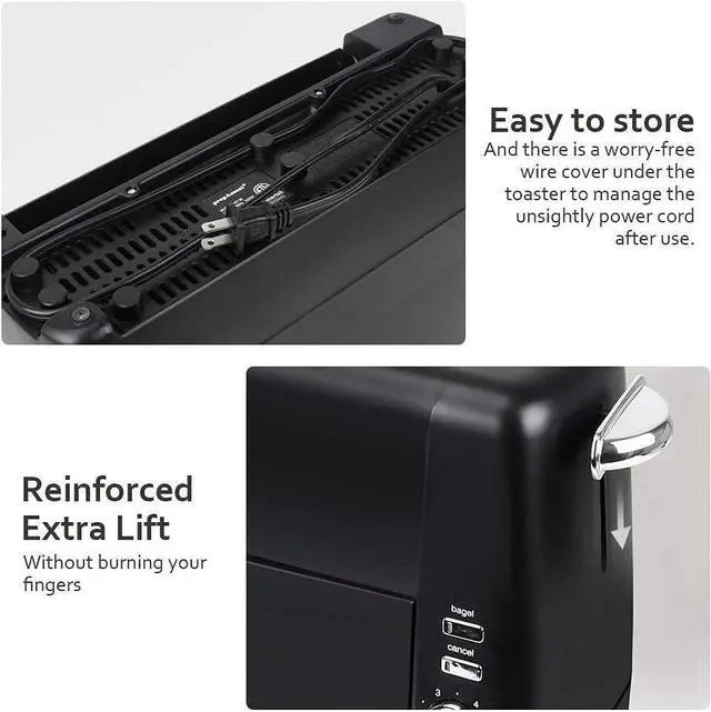 6 Browning Level: The toaster has 6 shade settings to choose from; You can choose the burnt degree according to your favorites, and bake light golden and dark toast to meet your taste Bread or breakfast; In addition, the bagels and cancel functions can provide you with additional operations