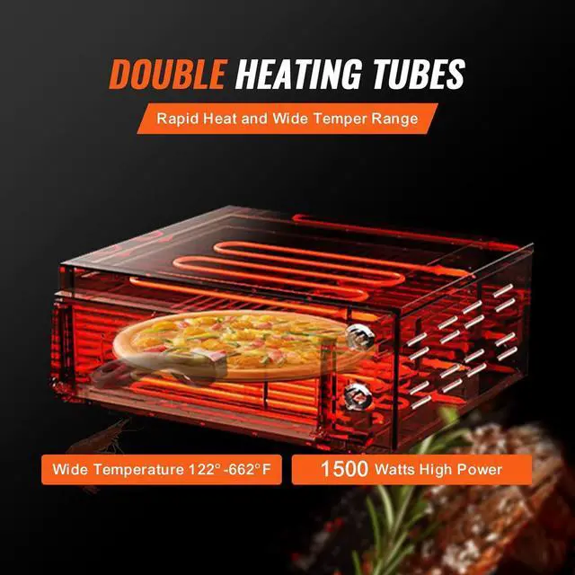 Enjoy Crispy Pizzas Every Time: The 1500W powerful commercial pizza oven empowers you to bake crispy and yummy pizza just in few minutes. Coupled with top and bottom dual heating tubes, it unleashes 360° uniform baking and sufficient heat to swiftly cook your food to perfection every time.