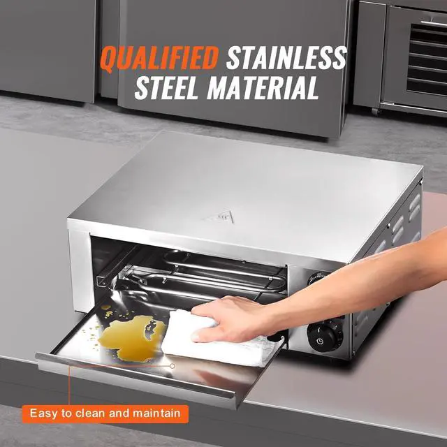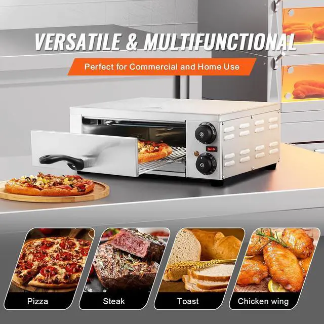 High Quality Electric Pizza Oven: Crafted with food-grade stainless steel, VEVOR electric pizza oven assures you a secure and hassle-free baking experience. Coupled with the provided baking grill and crumb tray, this countertop pizza oven is able to bake crispy pizzas up to 12 inches, perfect for your kitchen, dorm, camping, and parties.