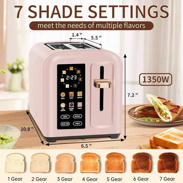 7 Shade Settings: This 1350W toaster is 50% faster than regular, realize uniform toasting while heating rapidly. By touching the TIMER button of the toaster, choose 7 different shade settings from light yellow to dark black. Meet the taste of the whole family. 4 gear is recommended