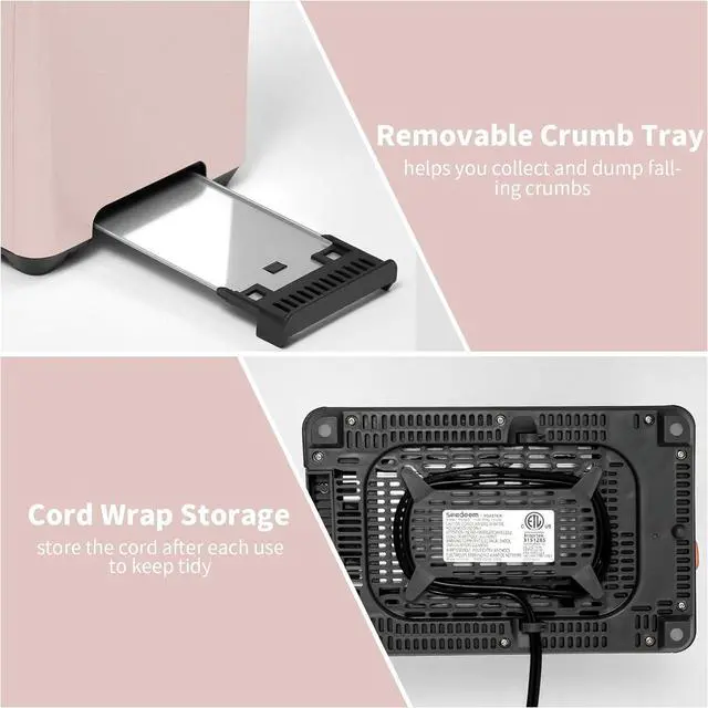 Easy Operation & Cleaning: 1.4 in extra wide slots can accommodate different types and thicknesses of bread. Cord storage at the bottom helps you clean up messy wires. Removable crumb tray helps you collect and dump falling crumbs. Memory function will keep the bread type and shade settings from the last toasting
