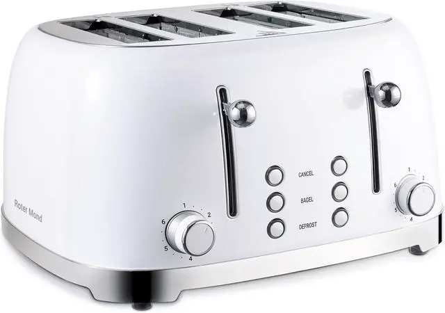 Extra-Wide Slots: Roter Mond 4 slice toaster comes with food grade 18/8 stainless steel body. 1.5 inch 4 slot extended heating surface allows for a wide variety of items to be toasted such as waffle, Muffin, bagel, etc.