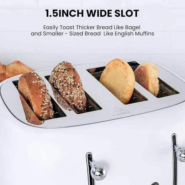 Retro Design Toaster: With compact and vitage design, this 4 slice toaster can save space on your countertop. It is also a great present for housewarming, Thanksgiving, Christmas, birthday, wedding, etc.