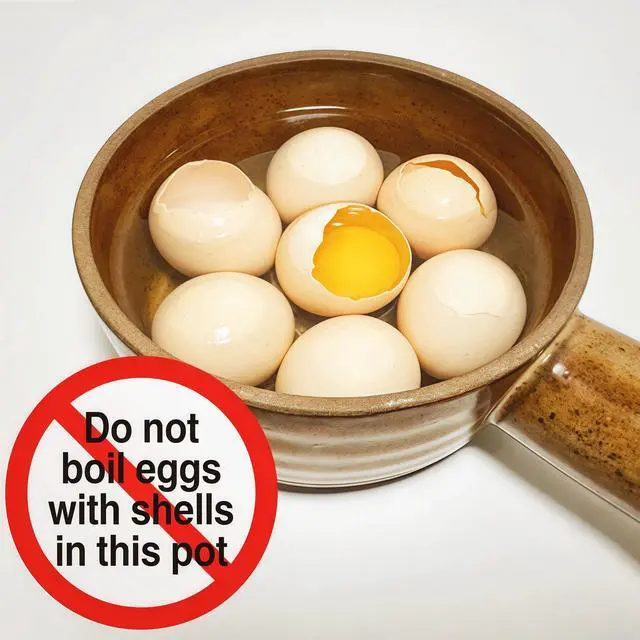 WARNING: Boiling eggs in their shells in this ceramic pot may cause sudden explosion and hot water splashing, resulting in severe burns. Prohibited!