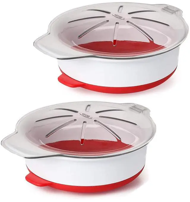 At OXO, we believe microwaves are for more than just reheating food. We developed our line of microwave products for busy cooks who want to make healthy meals and snacks - quickly, easily, and without a mess. Premium materials mean better results, and thoughtful touches like stay-cool handles and easy adjustments let you customize your meal just the way you like it. Make scrambled or fried eggs in 30-60 seconds Weekday breakfast leaving you cold? Our Microwave Egg Cooker lets you make scrambled or fried eggs for breakfast sandwiches (and more!) in a minute or less. With a curved bottom to help center the yolk for fried eggs, a wide opening for whisking scrambled eggs right in the Cooker, stay-cool handles for grabbing right from the microwave, and a removable base to easily transfer your eggs to bread or plate - you'll be making hot, eggs-ellent breakfast in a flash.
