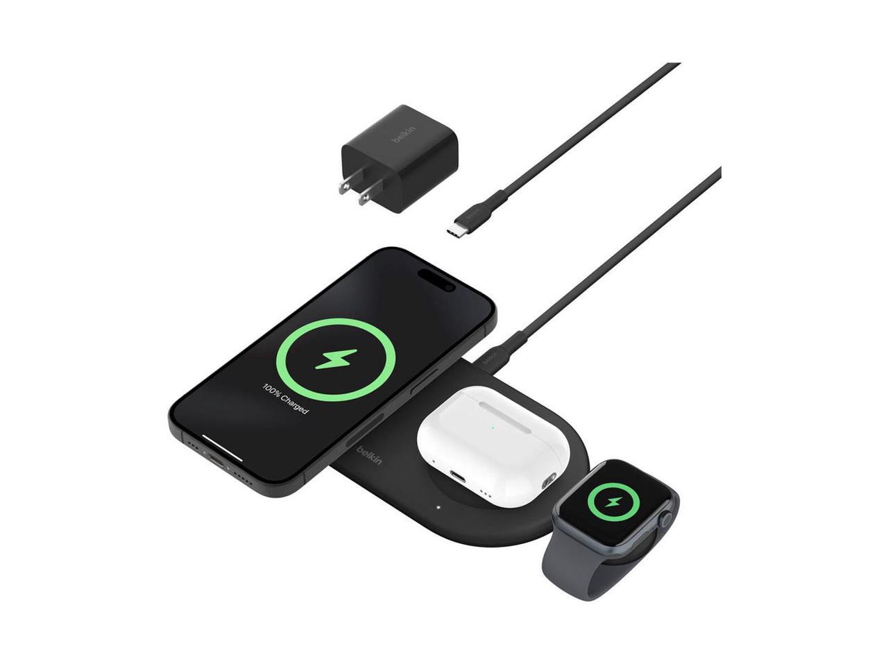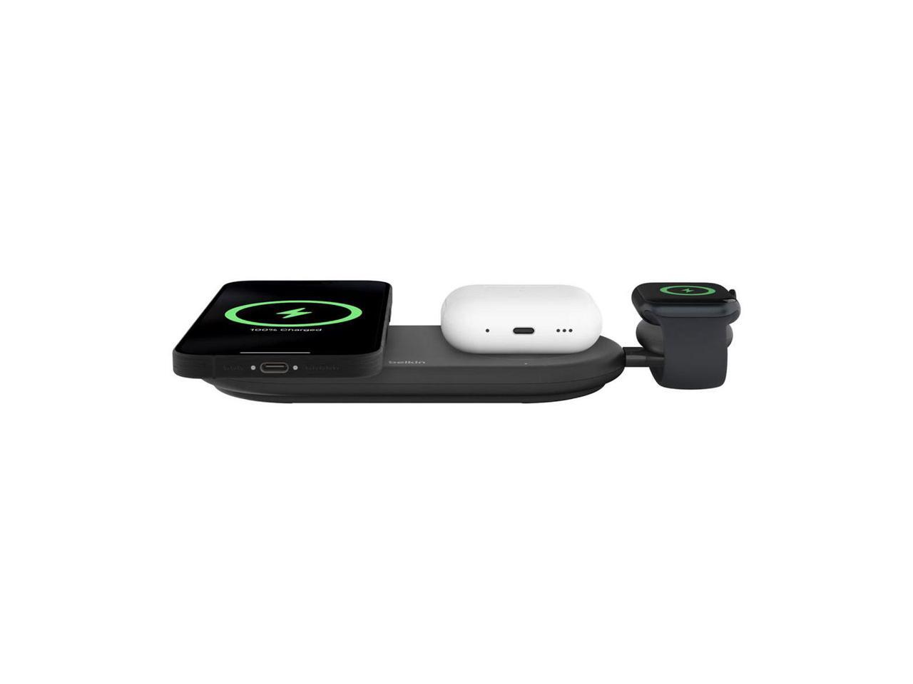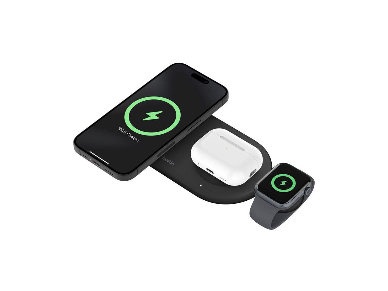 Belkin BoostCharge Pro 15W 3-In-1 Magnetic Qi2 Charging Pad with USB-C Apple Watch Charger, Black