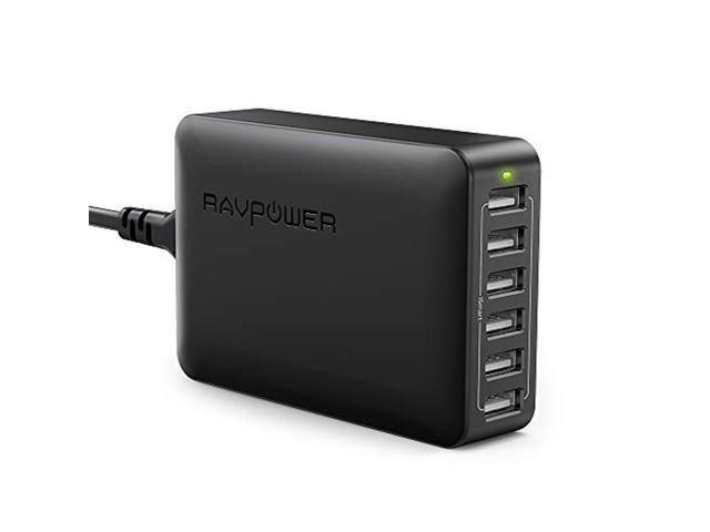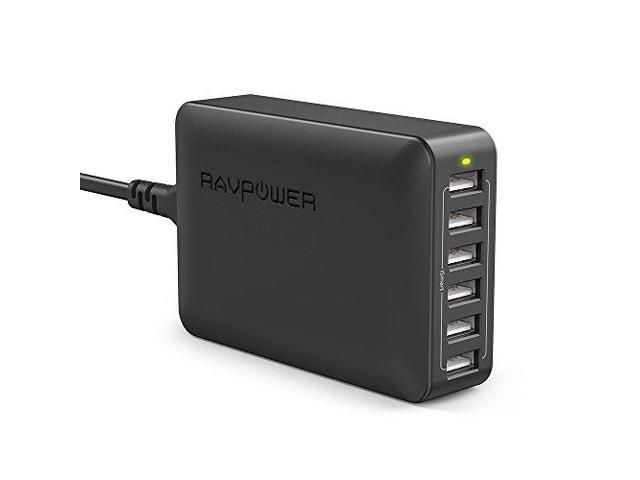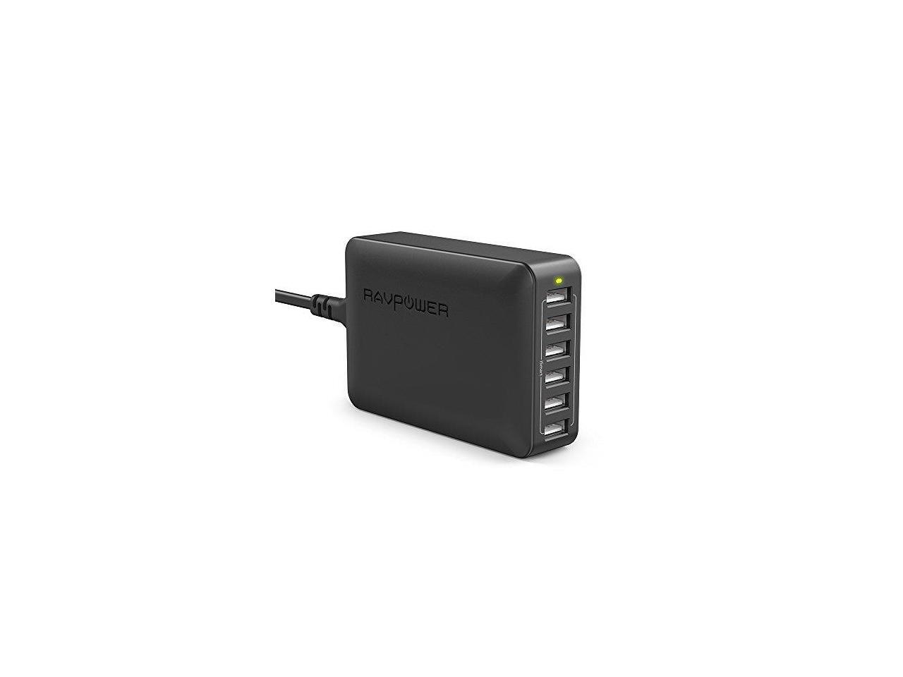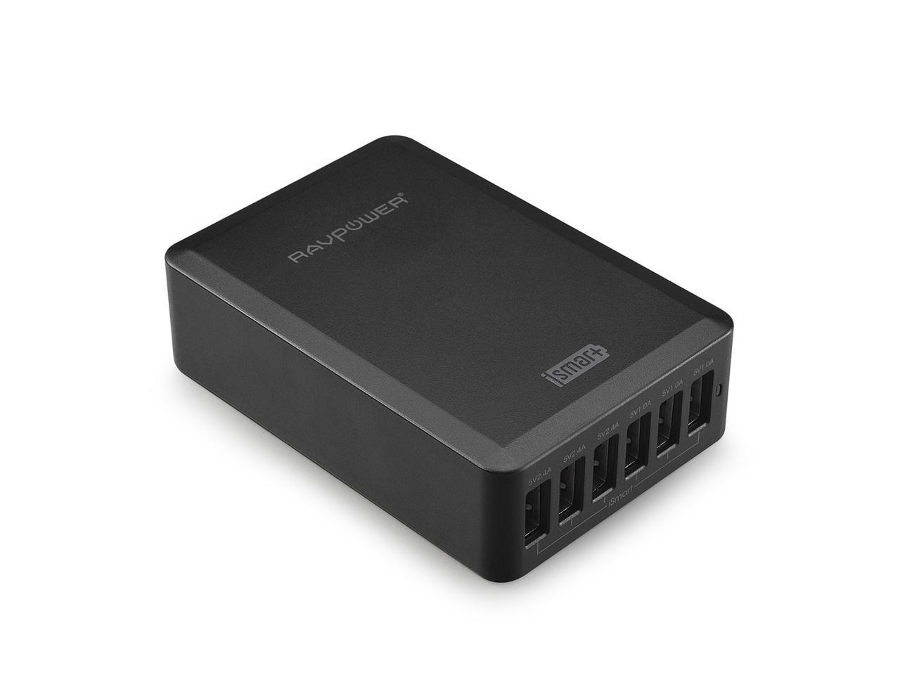 RAVPower RP-UC10(B) 50W/10A 6-Port iSmart USB Charging Station / USB Travel Wall Charger for Most USB-Charged Devices - Black