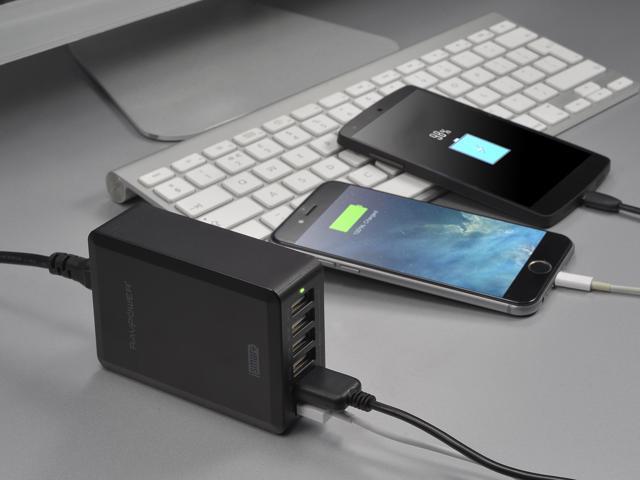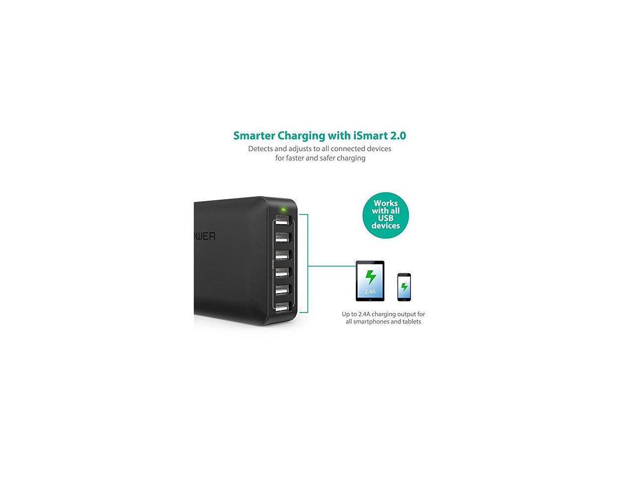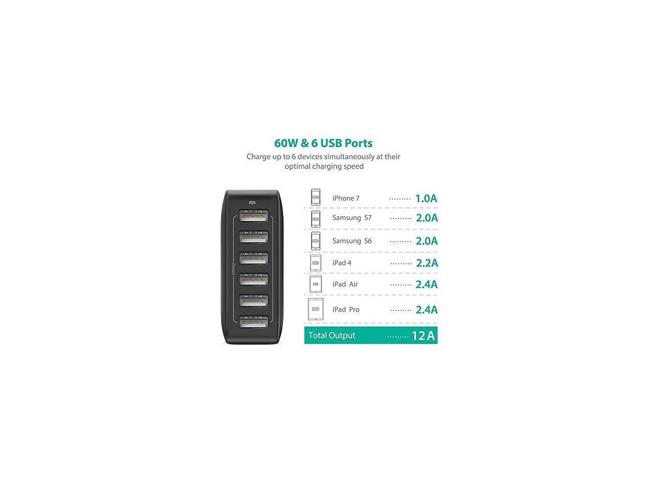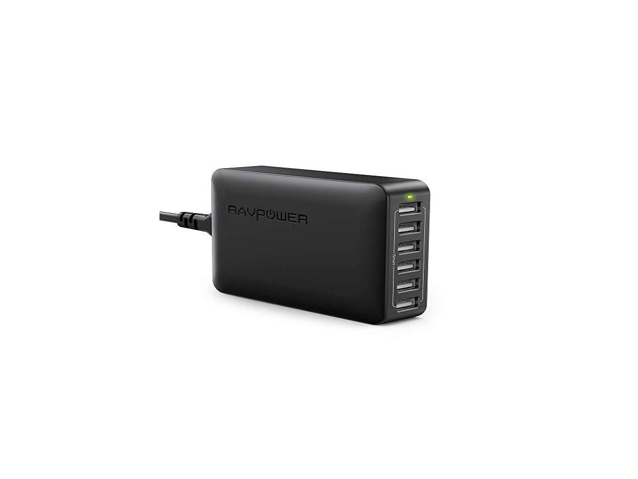 RAVPower RP-UC10(B) 50W/10A 6-Port iSmart USB Charging Station / USB Travel Wall Charger for Most USB-Charged Devices - Black