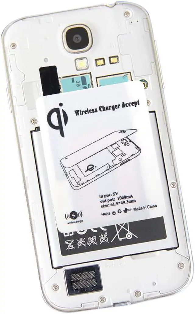 Adding wireless charging feature by piggybacking it on the battery of S4, it works well with any Qi-enabled charger.