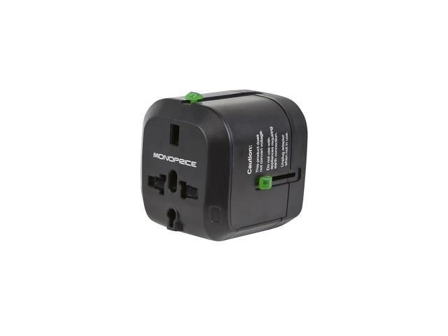 Monoprice Universal Travel Adapter - For NEMA 1-15 (US), CEE 7/16 Europlug (EU), BS 1363 (UK), AS/NZS 3112 (Australia, New Zealand, China), Black