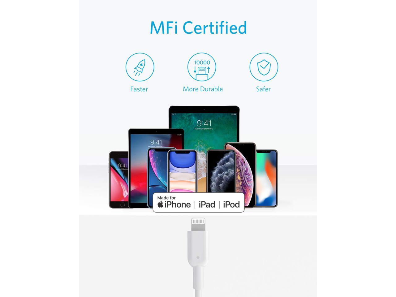 - MFi: MFi certification and strict quality testing ensure your Apple devices are charged safely, at their fastest possible speed.