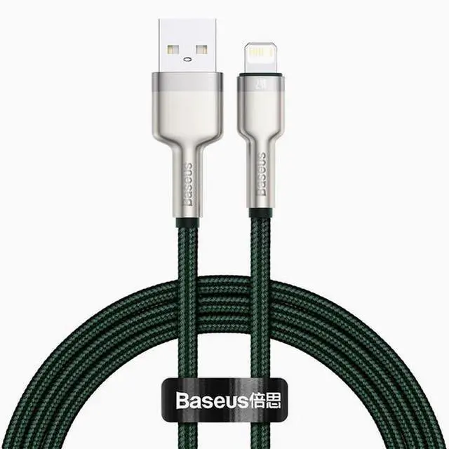 Brand: Baseus Name: Baseus Cafule Series Metal Data Cable USBto iP 2.4A Material: Zinc alloy+Nylon braided Current: 2.4 A Transmission: 480Mbpsspeed Length: 1m, 2m Color: Black, White, Purple, Green