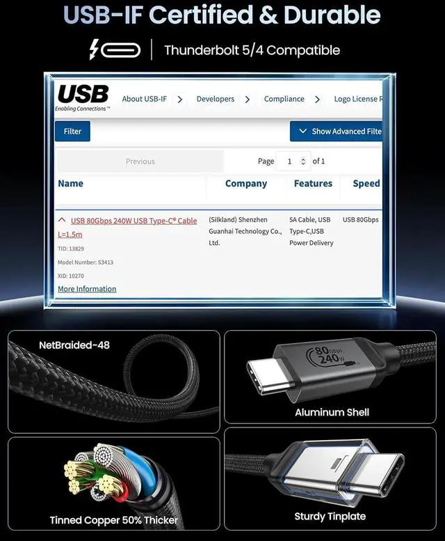 [80Gbps Ultra-Fast Data Transfer] It delivers bidirectional 80Gbps speedstransfer 6GB files in 1 second for unmatched efficiency. Fully compatible with Thunderbolt 5 and USB4 standards ensuring zero signal loss of connection during high-performance tasks. It is USB-IF certified meets full