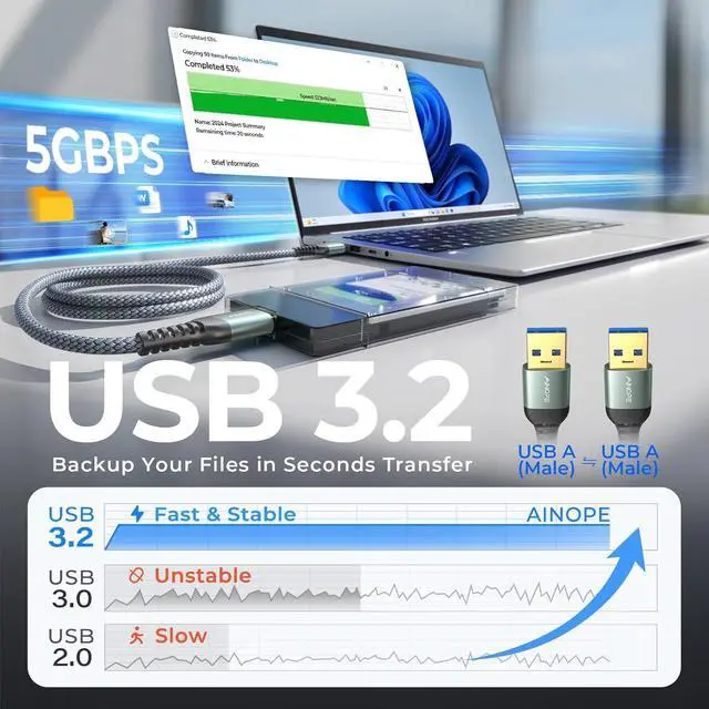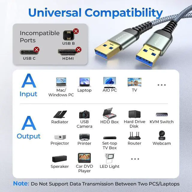 COMPATIBILITY: AINOPE USB A to USB A cable connects a USB peripheral with USB 3.0 type A port to a computer for speedy file transfer. It compatible with Laptop Laptop Cooling Pad Smart TV USB in car DVD player USB 3.0 hub Monitor KVM Camera Wacom Blue-ray Drive Set Top Box 2.5 -Inch External Hard Drive Enclosure with Type A port and most USB 3.0 external hard drives with Type A port.