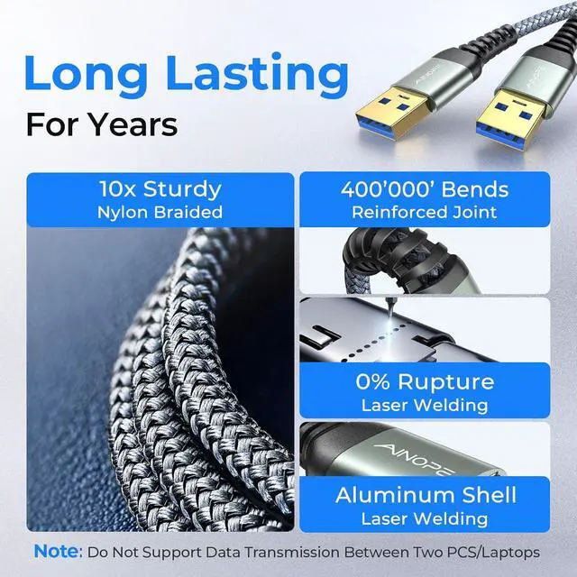 5Gbps DATA TRANSFER SPEED: The transmission speed of AINOPE USB A to A cable up to 5Gbps 10 times faster than USB 2.0 cables which can transfer your large files just in seconds. It also Backwards compatible with computer USB 2.0 and USB 1.1 ports. The premium pure copper core has multiple shielding for the optimal signal clarity and gold-plated connectors effectively anti-corrosion so to prolong the cable service life. HUGE OUTPUT FOR YOUR COOLING PAD: The maximum output of this male to male USB 3.0 cable is up to 3A which provides enough power for your laptop cooler so to keep your cooling pad performs the best no more worry about your laptop getting hot ensures the stable operation of your devices.