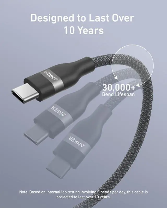 Ultra-Durable Charging Cable: With a 30 000+ bend lifespan and the ability to withstand 220 lbs without breaking this cable is built to last over 10 years.
