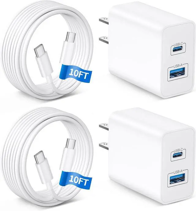 You Get: 2 x 45W Dual Port USB C Wall Charger Block (White) 2 x 10FT USB C to USB C Cable (White). Carry a 45W fast USB-C charger kit with you to make you don't run out of power when you need it most