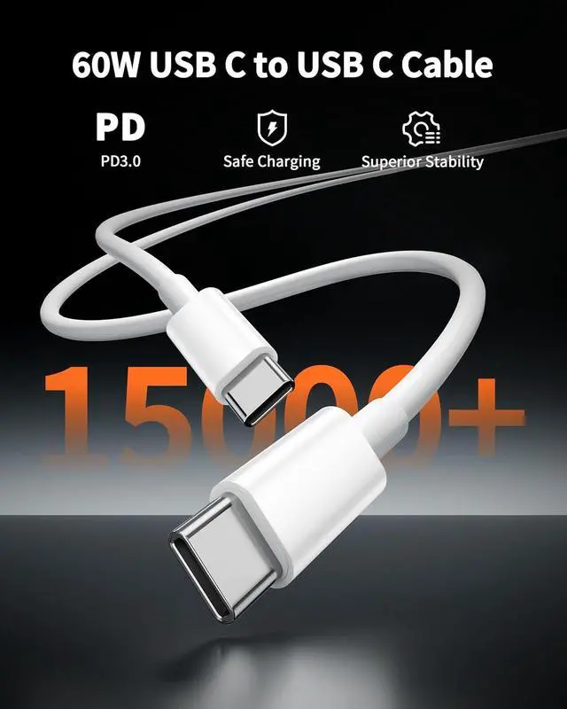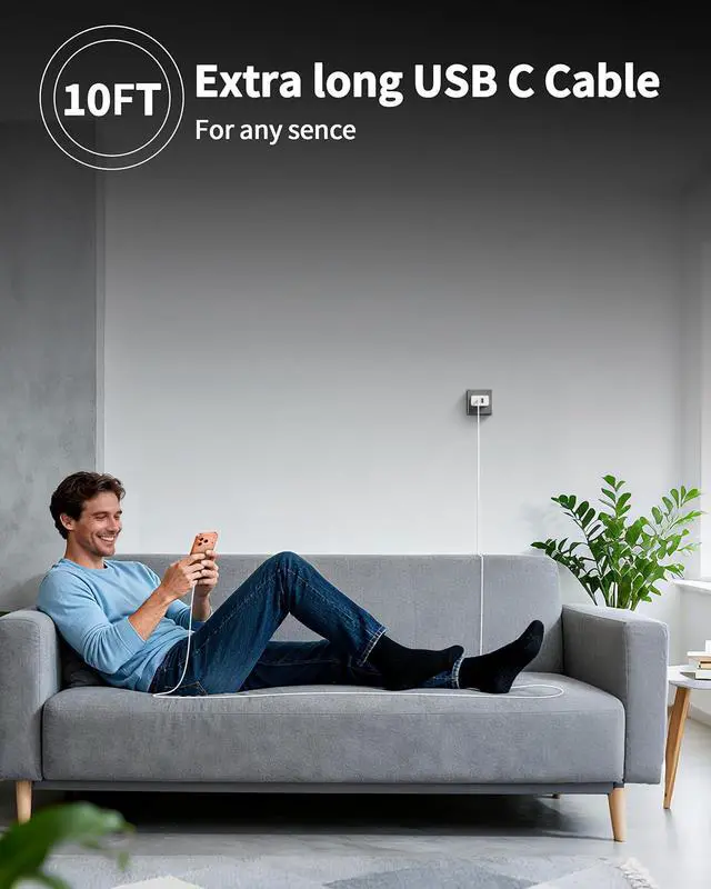 Charger Cord: This USB-C cable supports PD 3.0 fast charging with a maximum output power of 60W (20V/3A) and data transfer speed of up to 480Mbps. The 10-foot extra long length design makes it convenient for you to charge from a distance on the sofa in the bedroom in the office or even while playing entertainment videos and gamesWidely
