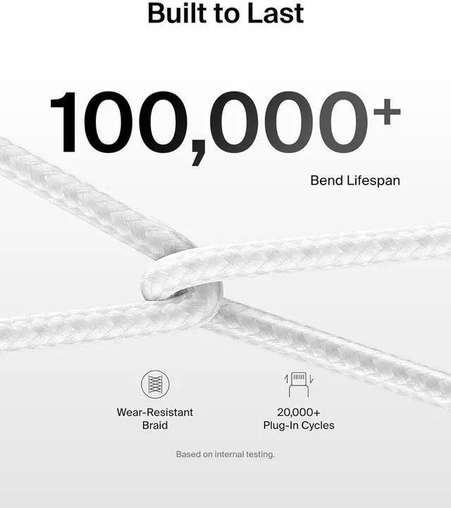 SUPERIOR DURABILITY: Our soft flexible Belkin BoostCharge Cable is made with an extra durable braided exterior with ABS head tested to survive over 25 000 bends and 10 000 plug-ins** for up to 25x the durability of most cables. SUSTAINABLY MADE + 2-YEAR