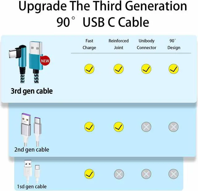 [Upgraded Exclusive Right Angle Design]Teeind 90 degree usb c cable features 90 degrees L design. It's user-friendly design more convenient and comfortable for playing games watching videos reading e-books when you charging.