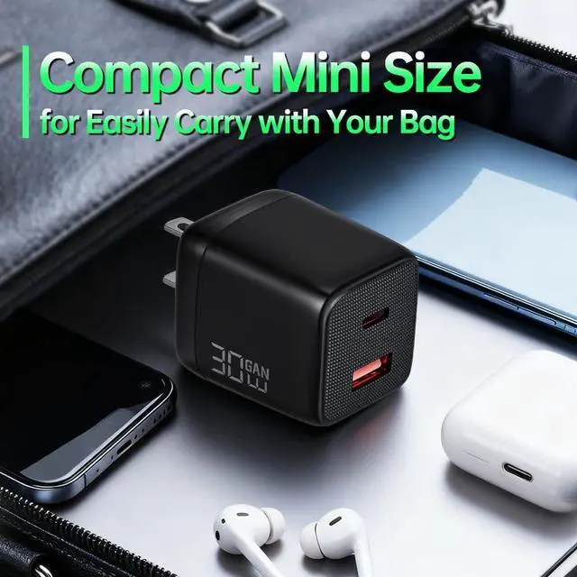Ultra-Compact Design: It has dual ports and is 30% smaller than the original 30W charger with a foldable plug. It fits any pocket and is your perfect travel partner!